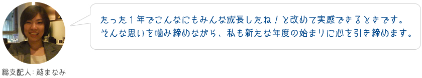 このように去年まで自分と同じように覚えていった先輩と一緒にいろいろな業務に携わって一年を過ごしていくと、ほとんどの方が適正を見つけ、自ずと来年の目標、将来の「なりたい自分」が見えてきているものです。
